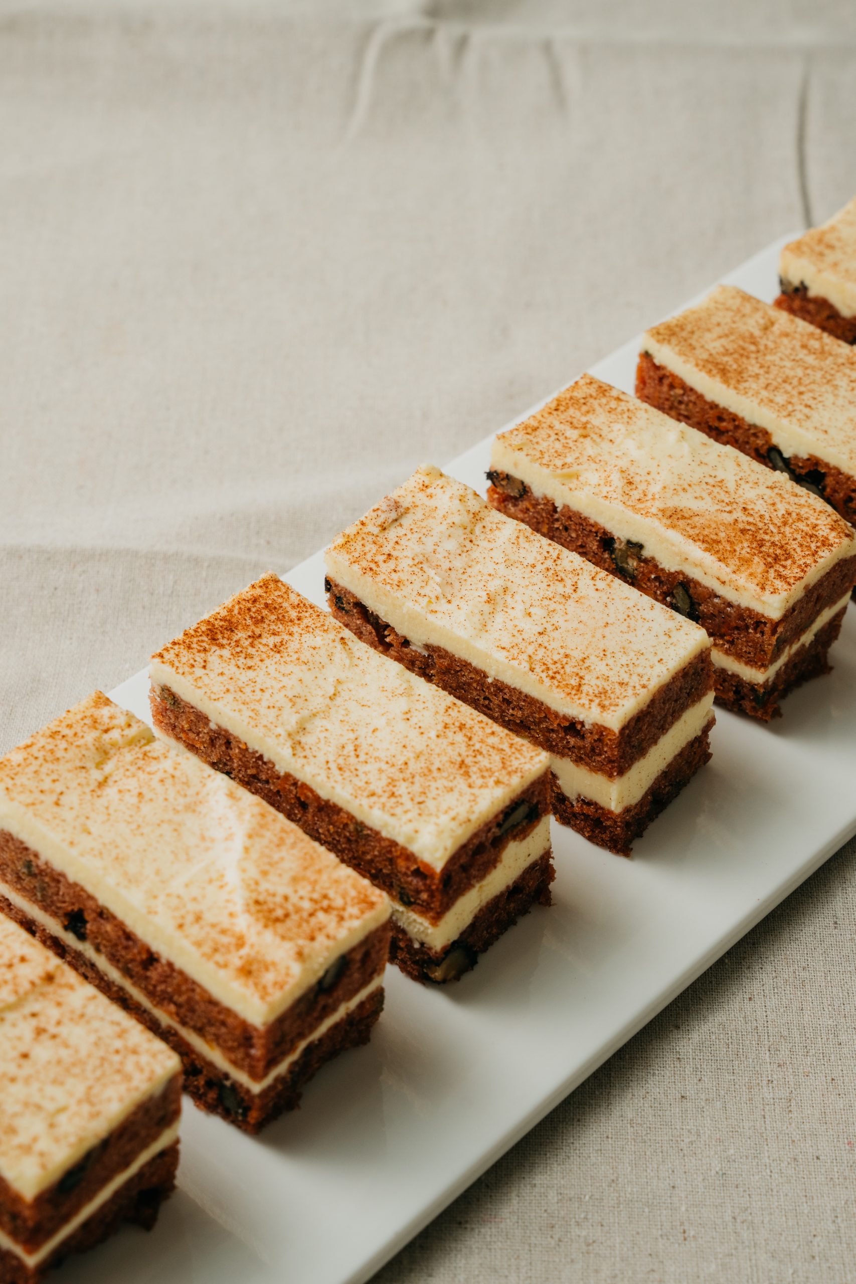 Layers of our popular carrot and walnut cake, iced with cream cheese icing.