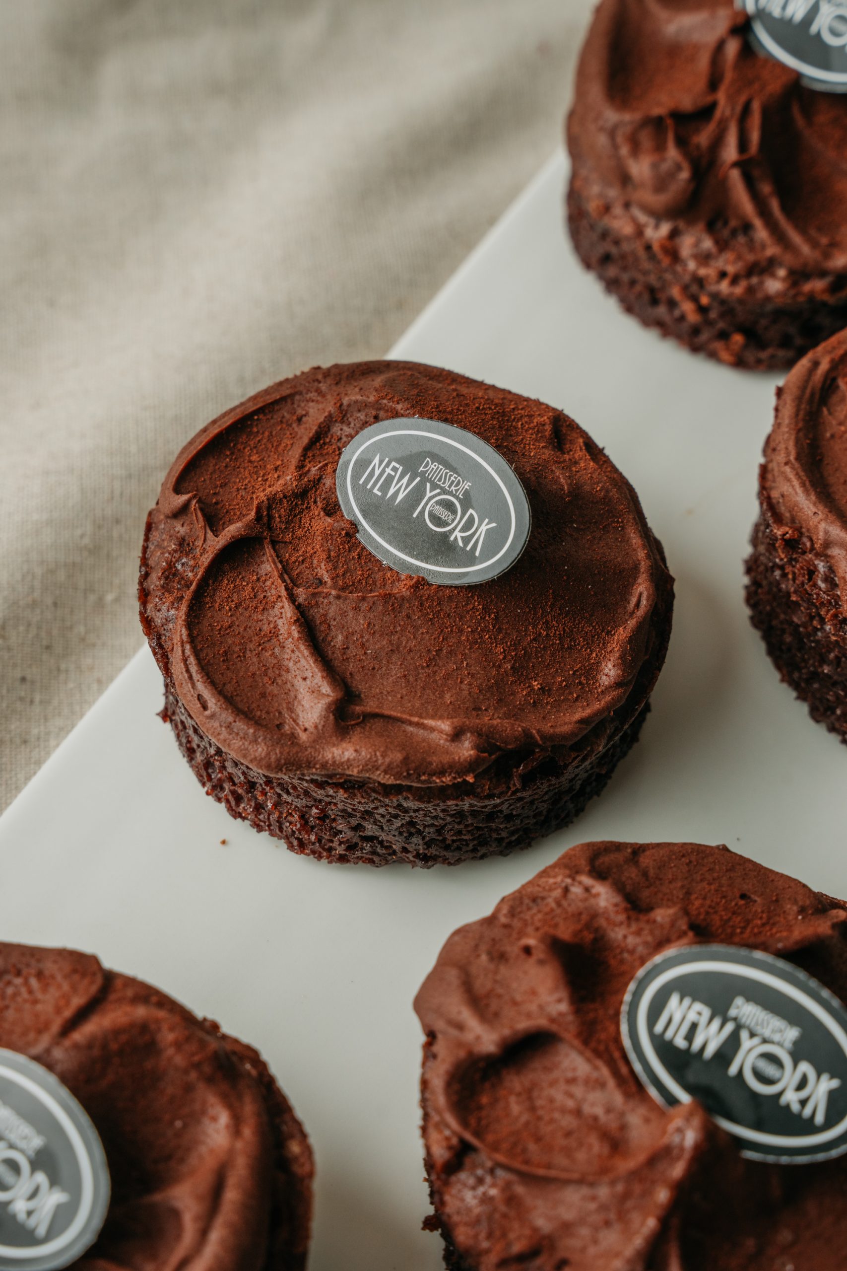A moist and flourless chocolate cake, topped with chocolate ganache.